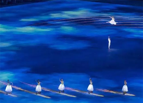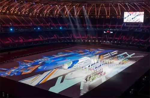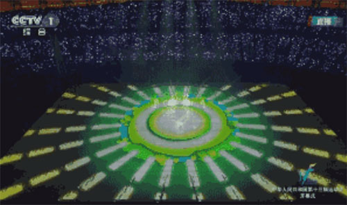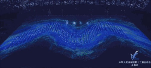 ? 此次開幕式大亮點是全程全屏激光投影的使用,將投影技術與場內的表演者動態結合,再與場外高大建筑燈光秀互相輝映,讓本屆全運會的開幕式在畫面上呈現出如夢如幻的美妙感覺,是歷屆全運會乃至奧運會開幕式展演的一項創新。