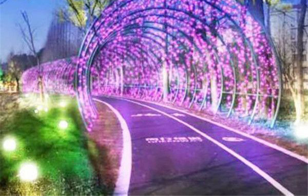 ? 此次改造的路燈不止拘泥于單調(diào)的黃白色,彩色投光燈的引入,讓綠道和兩邊的樹木呈現(xiàn)不同顏色,營造如夢如幻般的感覺。此外,彩色投光燈大的特點就是能讓燈光的顏色根據(jù)四季變化依次更替為昡綠、夏藍、秋黃、冬白,產(chǎn)生不同的顏色效果。