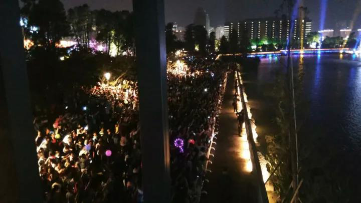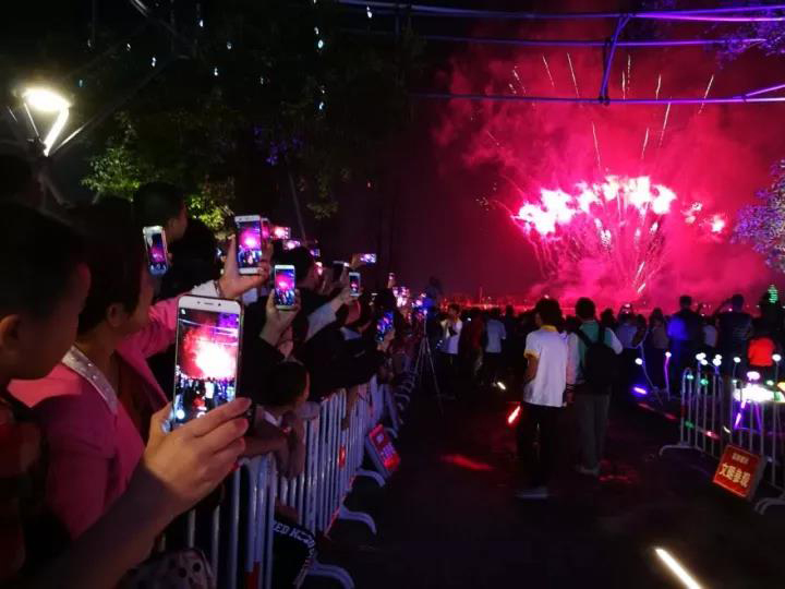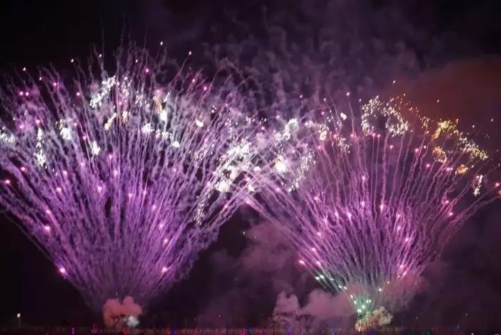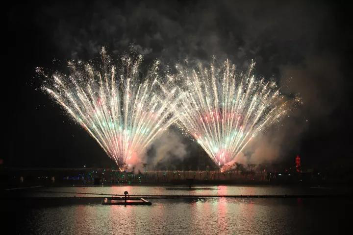 ? 煙花匯演持續(xù)了近15分鐘,各式煙花在濕地公園中心湖上綻放,讓觀眾看得十分入迷。