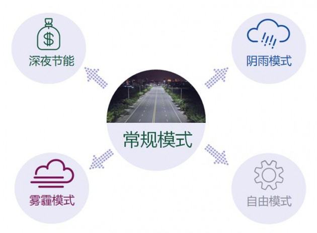 1、成熟的公共照明智能管理系統,通過NB-IoT\Zigbee\PLC等通信方案,人工遠程調節,或者設置有數據接口從氣象部門獲得當地的天氣,根據天氣情況調節配光曲線;
