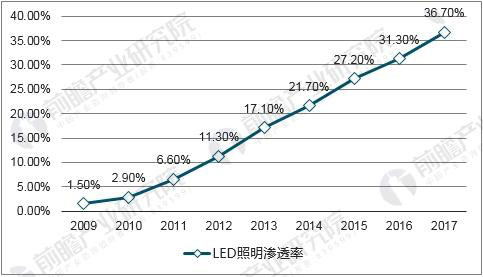 ? 近年來,全球LED市場高速增長,已逐步取代白熾燈、熒光燈等其他照明光源,滲透率持續(xù)快速提升,燈港照明據新發(fā)布的《LED照明產業(yè)市場前瞻與投資戰(zhàn)略規(guī)劃分析報告》數據顯示,2017年全球LED滲透率達到36.7%,較2016年上升5.40%。
